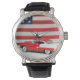1955赤と白年アメリカ国旗を掲げたシェヴィー車。