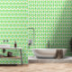 70年代の壁紙に似たレトロ70年代の幾何学的な形状 – このバージョンはより落ち着いた緑の色合い白い背景は、あなたにぴったりの他の色に変更することができる。ソフトグレー正方形のパターンの繰り返しサイズを変更するには、3、6、12または24インチを使用する