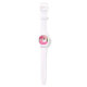 このレトロピンクウォッチでは、1960年のロマンチックなコメディのシーンのように見える。ミニマルデザインは彼女の超キッチンと超ピンクのペントハウスのアパートで洗練された女性を示している。部屋には白いグラウト線が付いたピンク色のレンガの壁が備わっている。壁の前には燃え盛る火の付いた緑色の円錐形の暖炉がある。スライドガラスのドアを通して、白い手すりが付いたピンクのバルコニーが見える。緑豊かな熱帯植物がアクアの植木鉢に入っている。バルコニーからの眺めは、大きな街のスカイラインのシルエットだ。もちろん、シルエットはピンクの色合いだ!空には黄色い三日月が見える。ホットピンクの上に立って、アパートのshagラグは、このデザインの主要な女性である。彼女が作成したバラ色の世界へのスタークなコントラストで、美しいブロンドは、型枠のフィッティング、黒、スクープのトップを着ている長い、フレア、白いスカートと黒い羽飾り。このデザインを使えば、あなたもバラ色のメガネで世界を見ることができる!