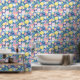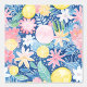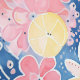 淡いブルーの背景にパステルカラーのレモンスライスと可愛い花を施したシームレスパターン。このデザインは、柔らかく爽やかな色合いと魅力的フローラ要素を組み合わせお洒落、明るい視覚効果を生み出す。