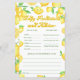 このおもしろい予測とアドバイスゲームでレモン赤ちゃんシャワーテーマパーソナライズされたにベビーtouchを追加!レモンをテーマにした赤ちゃんシャワーに最適なゲームで、ゲストは両親のために自分の推測と知恵を共有することができる。夏の赤素晴らしちゃんシャワーテーマに加えて、それはあなたの明るく陽気なレモンの赤ちゃんシャワー装飾を補完する。夏楽しむの赤ちゃんシャワーの甘い記念お祝い!