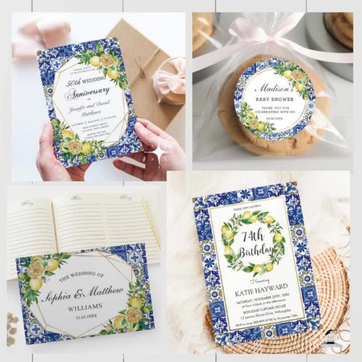パーティー詳細でシックなレモンブライダルシャワー招待状を簡単かつ迅速にパーソナライズし、単にボタンを押して文字のスタイルと配置をさらに再調整し、フォーマットする。水彩レモンリースと美しい紺色の地中海のモザイクの裏面デザイン。一致するアイテムをストアで利用可能!ハHappy Cat Studio