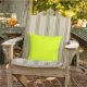 軽い、色無地の"レモンライム"屋外装飾用クッション。レモンライムは黄緑色。クリック色を変える、またはパターンやデザインを追加するために「オン」に設定する。製品16進コード: #e3ff00