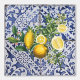 ポル色彩の鮮やかト伝統的ルデザインのハンドタイルとレモン。完成パターン。アズレジョ青白フローラのタイル作品。完璧な装飾デザイン、任意の大事な行事のための理想的な贈り物。黄色いレモンを緑で描き、青と白のポルトガル語のヴィンテージのパターンに花を咲かせる美しい夏のデザイン。