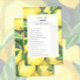 レモン柄と緑の枝の水色イラストレーションを特徴とする水色レモン柑橘系テーマブライダルシャワーカード。書道エレガントは、春、夏、秋の結婚式に最適。一致する項目が使用可能。