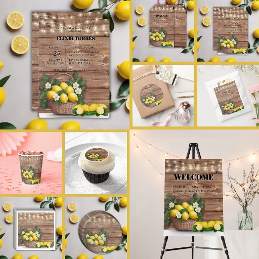 レモ祝ンバスケッ素朴トのベビーシャワーと小さな一つ、優雅な優雅さと居心地の良い田舎の雰囲気を混ぜ合わモダンせる。新鮮なレモン、籐のバスケット、明るい黄色のアクセントを備え、太陽の光と甘さと愛で満ちたこの楽しいイベント!他のもし一致する製品またはカスタマイズが必要な場合は、親切にZazzle経由でメッセージ。