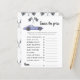 レースカーテーマベビーシャワー招待カード紫(紫)ヴィンテージカーと黒 – 白のレースフラグの水色のイラストを搭載。「赤ん坊のシャワーを求めて走り回る」