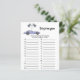 レースカーテーマベビーシャワー招待カード紫(紫)ヴィンテージカーと黒 – 白のレースフラグの水色のイラストを搭載。「赤ん坊のシャワーを求めて走り回る」