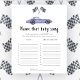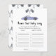 レースカーテーマベビーシャワー招待カード紫(紫)ヴィンテージカーと黒 – 白のレースフラグの水色のイラストを搭載。「赤ん坊のシャワーを求めて走り回る」