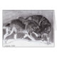 雪の中で狼のペアをランニング一緒にフィーチャーしたグリーティングカード。Michaeline McDonaldによるアートワーク。