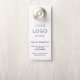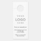 あなたのビジネス連絡のシンプル詳細と個人的なノートを追加してエレガント、こののドアハンガーの背面に後を追は、クライアントと一緒に彼らに申し訳なく知らせてください。前面にロゴのイメージを追加し、ドアハンカスタムガーの背面にプロモーションバナーの写真を追加。