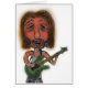 鉛筆スケッチから作成された燃え尽きた岩の星のデジタル画像。ミュージシャンは遊緑のギターで、茶色の髪とピンク色の肌をしている。漫画のキャラクターは大きな唇と彼の目のまわりにの暗い円を持つ。