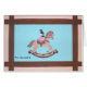 スコットランド人の小さな女の子は、彼女のロッキング馬に乗るのを楽しむ。