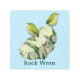 このイラストレーションは、アルプスの岩に突き刺された2本のロックレンチ/チュークスを示している。岩のウォレンは、ニュージーランドの南の島の高山の地域で見つかる小さな鳥である。鳥は苔や地衣類で覆われた様式化された岩の上にある。
