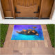 ロットワイラー-蝶を持つMetzgerhundの子犬 ドアマット
