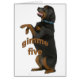 ロットワイラーのお願い、Tシャツ、マグカップなどでこれを選ぶ。持っているフォークに最高の贈り物。このかわいらしいロッティーは立ち上がって物乞いをしていて、「五つくれ」という言葉は正しい。