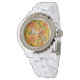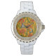 ロビンスとユリの花、オレンジと緑 腕時計