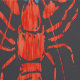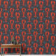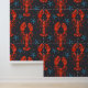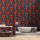 ブロックプリントデザインにロブスターパターンを持つ超現実動物スタイル。ヴィンテージ動物の壁紙と赤いロブスター。