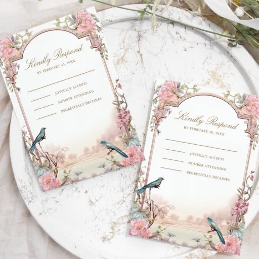 ロマンチックな鳥赤面ピンクフローラムスリム結婚ズ 招待状