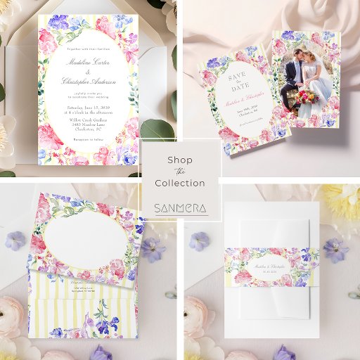 この水色フローラリージェンシースタイル結婚式招待状ベリーバンドはあなたの招待を送信する美しい方法である。このデザインはカラフル水色の花と背スタイリッシュ景を特徴としストライプの、春や夏のフローラに最適な摂関時代の優雅さのtouchを結婚示唆する。このベカスタマイズリーバンドは磨いた表情で結婚も楽しめる。