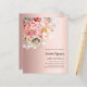 女性のためのエレガントな50歳の誕生日の招待。ピンクとローズゴールドのフローラル、バラとレースで飾られたローズゴールドのグラデーション背景。名前とパーティー・詳細のパーソナライズおよび追加1枚= 1枚の招待状を印刷したエッジからエッジ
