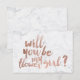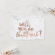 モダンでオリジナル、そしておしゃれなブラシ手書き文字のタイポグラフィーが、偽のローズゴールドの葉の上にあなたは私のフラワーガールカードになります。エレガントでシンプルな白いトレンディな大理石の背景に