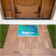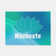 ヨガをテーマにしたドアマットで、青から緑のグラデーションの渦を描き、真ん中に青と白の蓮の花のシルエットを描きます。 白はっきりしたの文字読のナマステ(ヒンズー語の挨拶)で、必要なものに変更読することができます。
