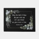 引用文感動的聖なる書物、 経典doormatは、黒い背景にシンプルセージ緑色の金ゴールドを持つ葉フレームを表す。ローマ15:13は励ましの聖書の聖句を掲げている。「希望の神が、神を信頼して喜びと平和を満たしてくれることを願う。