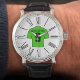 サッカーファンの腕時計。緑のシャツを着たサッカーシャツデザイン。選択した名前と番号を追加する。時計の顔はローマ数字だ。