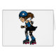 彼女がトラックのまわりで引き裂くように妨害機の位置を遊ぶローラーの女の子の身に着けている青の素晴らしいデジタル漫画。 彼女の長い毛は彼女の後ろで彼女のquadskatesの彼女のピンクの車輪が回るように流れます。