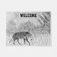 白と黒のオオカミのスケッチを持つ野生動物愛好家のためのドアマット。文字「Welcome」を含む。これは可能カスタマイズです。©アナベルポッター