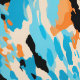 青、オレンジ、黒の動物の皮のプリントを特徴とするシームレスなパターン。このデザインは色はっきりしたと印象的なコントラストで動物の模様のエキゾチックで鮮やかエキゾチックなエッセンスを捉えている