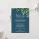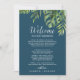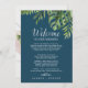 これらの野生のパームネイビー歓迎レターの旅程とマップカードは、目的地の結婚式の歓迎バッグに最適である。このデザインは、熱帯の夏のためのネイビー葉ブルーの背景に、緑の水色のバナナヤシの木、シダ、葉、植物植物や緑のエキゾチックな配列を備えて感じいる。カードの正面にはウェルカムレターと旅程が並んでいる。カードの背面に記載された鍵の場所を持つリゾートの地図を含める。