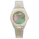 ワイルドピンクレディスリッパーオーキッドとエバーグリーン 腕時計