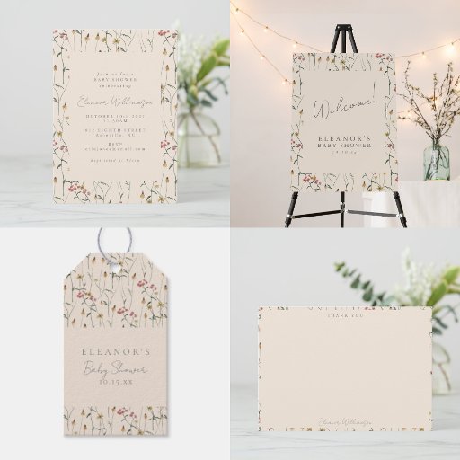 ワイルドフラワーお洒落フローラボホベイビーシャワー 招待状