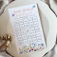 このワイルドフラワー蝶お洒落赤ちゃんシャワーと混ぜ合わせるおもしろいを作るゲストビンゴゲームを見つける!繊細な水色の蝶と野花を特徴とする、このインタラクティブなアイスブレーカーは、お互いの新しい人々と学おもしろいの事実を満たすように促す。ボホ、素朴な、またはフローラをテーマにしたベビーシャワーに完璧な追加!