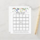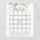 野生の花と緑の水色のカスケードを特徴とする赤ちゃんシャワービンゴカード。おもしろいでシャワーを浴びながらプレゼントを開く方法。