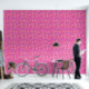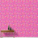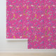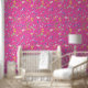 おもしろいホットピンクのアクセント壁の紙は、ワイルドフラワーの水色のパターン。