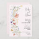 女のスタイリッシュ子のベビーシャワー招待状はエレガント、ピンクの背景にシックなレタリングで水の色のワイルドフラワーと淡い色のあなたの詳細を特徴とする。コレクション内の一致アイテム。