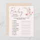 私たちの"ワイルドフラワーボホ赤ちゃんシャワー単語スクランブルゲームで赤ちゃんシャワーに笑いと遊び心を追加! このカード上の単語のリストを完了する多くのおもしろいを持っている、すべてのベビーに関連し、誰が最初に彼らを奪うことができるだろう!今すぐ手に入れ、忘れられない思い出を作れ!解決策: 1.式2.パシファー3.ベビーモニター4.ロッキングチェア5.スワドル6.おむつラッフル7.ゴムダッキー(アヒルちゃん)8.ベビーカー9.プレイペン10.eosines