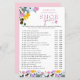 新郎新婦の名結婚前と一緒に、のパーソナライズされたまたはカップルのシャワーのためのシューゲーム。デザインはピンクの縁ど薄紫イエローとブルーの野生の花のフローラとピンクのレタリングを持かわいらしっている。このデザインには20の質問があり、希望する編集をもし歓迎する。