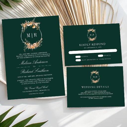 ワイルドフラワーQRコードエメラルドグリーンブライダルシャワー 招待状