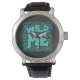 ワイルドミーブラウンとティール(緑がかった色)ヒョウデザイン 腕時計