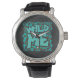 ワイルドメダルマチアンブラウンとティール(緑がかった色)デザイン 腕時計