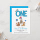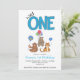 野生の1つのパーティー動物のバルーンと青で招待。テンプレートを使用してパーティー詳細を編集する。