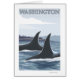 Washington - Orca Fins - LPオリジナルポスター – 2008 年に作成。ワシントンの風景を描いた画像。