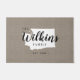 家モダンの家パーソナライズされたの州マップ内にあなたの家族の名前とdoormat。フェイク burlap canvas texture backgroundクリックカスタマイズ自分の文字と画像を追加し、優れたデザインユニークの1つを作成する!