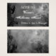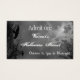 霧深い木、ワタリガラスおよび曇った満月が付いているハロウィンの不気味な空に対する灰色および白くグランジな手紙が付いているカスタムな名刺の大きさで分類されたハローウィンパーティかイベントのチケット。 かちりと言う音は背部にフォントを変えるためにそれを加えます文字、変更カードサイズを、救います後でのためのあなたのデザインをカスタマイズ。