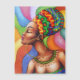ファッション化されたアフリカの女性のポートレート、ワックス生地の明るい色伝統的に囲まれて着るデザイン。オリジナルハンドスケッチ著作権BluedarkArt。