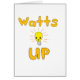 ワットは挨拶状を持ち上げます。 おもしろいのカスタマイズ可能なカードはかわいい電球とワットを言います。